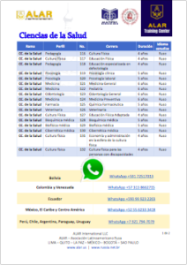 Esta rama no solo contiene las carreras tradicionales como Medicina, Odontología, Farmacia y Veterinaria sino casi una veintena de carreras estrechamente relacionadas a la salud tanto humana como animal.